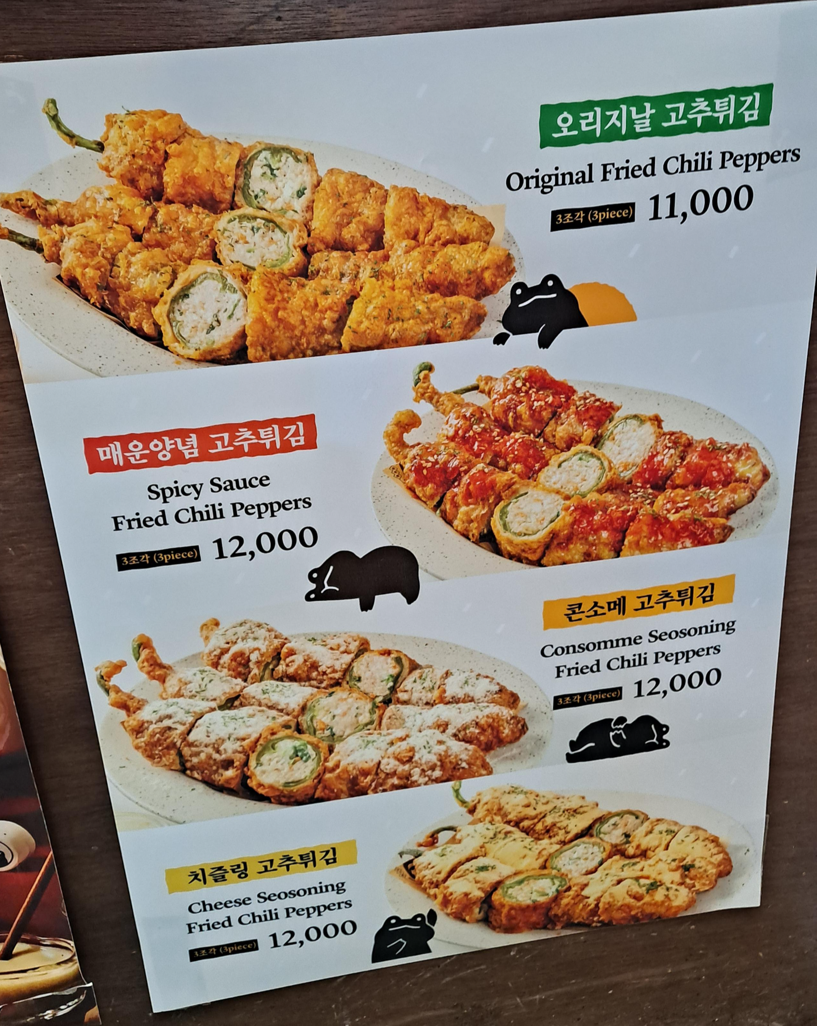 우이락의 대표메뉴인 고추 튀김류만 소개해 드릴께요